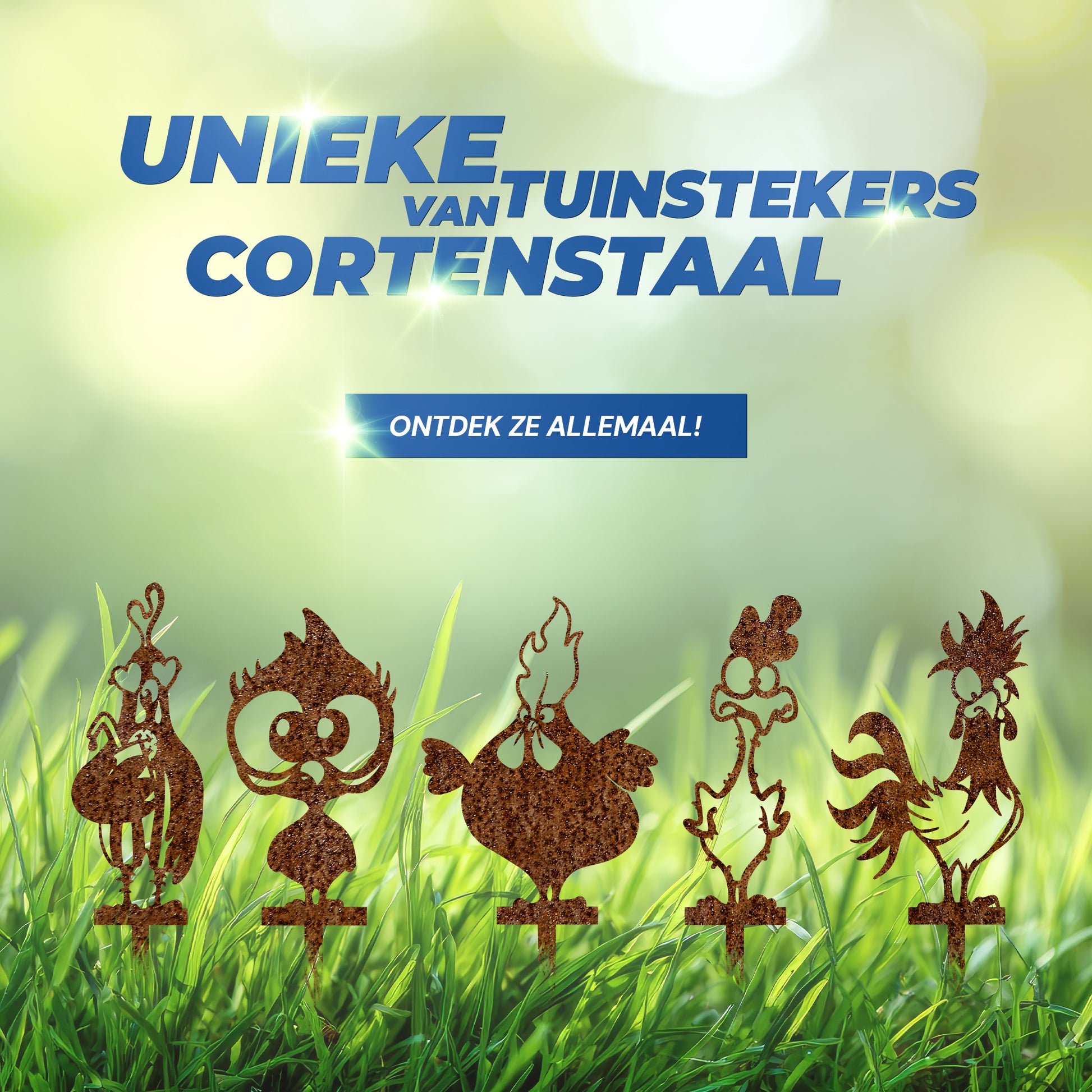 Rico de Stoere Haan van Weterings Store brengt een krachtige en trotse uitstraling in je tuin. Deze cortenstalen tuinsteker is gemaakt van 3 mm dik premium cortenstaal en voorzien van een strak gesneden silhouet. Dankzij het duurzame materiaal is Rico volledig weerbestendig en kan hij het hele jaar door buiten blijven staan.